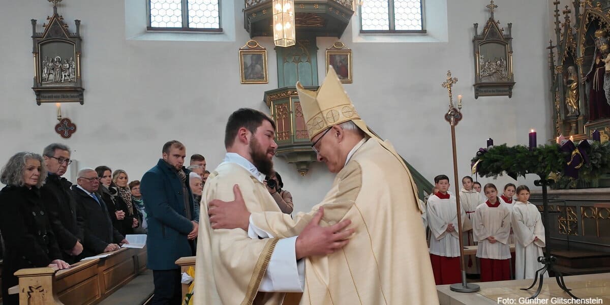 Im Rahmen einer feierlichen Liturgie stellte Regens Dr. Daniel Stark den Kandidaten dem Bischof und der Gemeinde vor. Der Kandidat bekannte seinen Willen zur treuen Amtsführung und gab das Versprechen ab, Gehorsam gegenüber dem Bischof, Dienst am Evangelium. Er legte sich längs ausgestreckt vor dem Altar nieder, während die Gemeinde die Allerheiligenlitanei betet, ein Symbol totaler Hingabe an Gott. Die bischöfliche Diakonweihe markiert einen entscheidenden Schritt im geistlichen Leben eines Kandidaten, der in den Dienst der Kirche tritt.