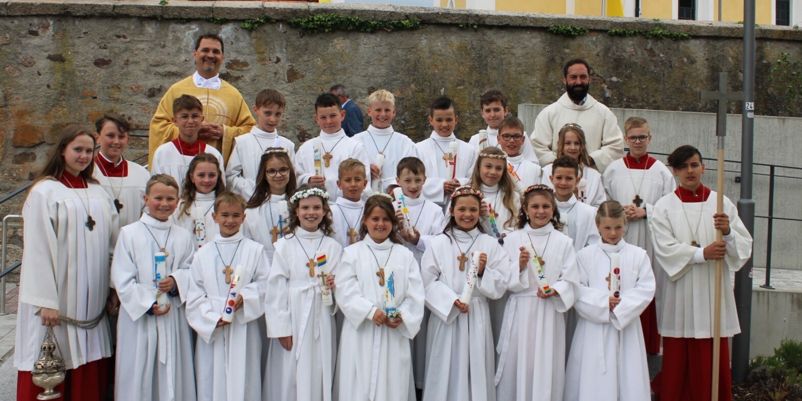 Dekan Heidenreich dankte am Ende des Gottesdienstes dem Kinderchor Wald unter der Leitung von Michaela Gleixner und Thomas Schön an der Orgel, Thomas Probst für die Organisation und die Vorbereitung sowie Mesnerin Birgit Kainz und den Ministranten für ihren Dienst. Die Erstkommunionkinder seien nun bei jedem Gottesdienst eingeladen zur Kommunion zu gehen, sagte der Pfarrer vor dem Schlusssegen.