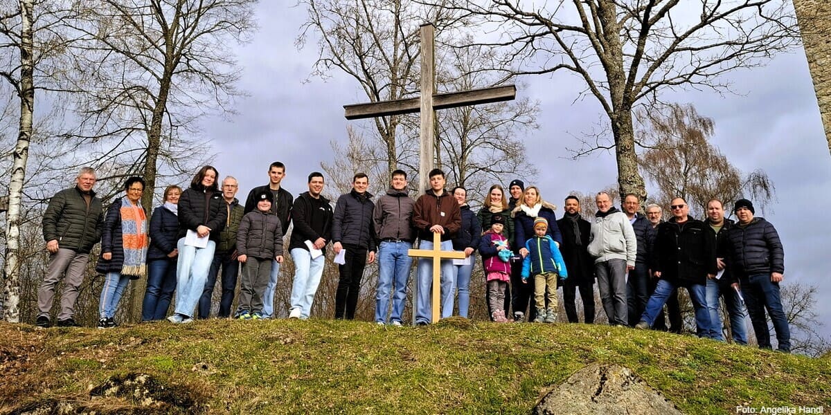 Am Karfreitag, 3.4. um 9 Uhr, hatte die Landjugend aus Zell zum gemeinsamen „Kreuzweg beten“ eingeladen. Da es schönes Wetter war, trafen sich alle dazu an der Pfarrkirche Maria Himmelfahrt um die Kreuzwegstationen hinauf zur Burg zu beten. Federführend gestaltet durch die Mitglieder der KLJB Zell wurde mit dem Kreuz voran, zu den 14 Stationen hinauf zum Burgberg gezogen. An jedem Stein, der eine Station des Kreuzweges inne hat, wurde gebetet, gebittet und kurz in Stille verharrt, ehe man an der letzten, der 14.Station ankam – „Der heilige Leichnam Jesu wird ins Grab gelegt“. Nach einem gemeinsamen Gruppenbild am „ Zeller Burg-Kreuz“, dass im November 2011 anlässlich des 125.Kirchenjubiläums von der damaligen Führungsriege der KLJB Zell dort aufgebaut wurde, bedankte sich der erste Vorsitzende Alexander Seidl bei allen, die sich die Zeit genommen hatten für den schon traditionellen Jugend-Kreuzweg, bei der auch Pfarrer Tinu unter den Bittgängern mit dabei war.